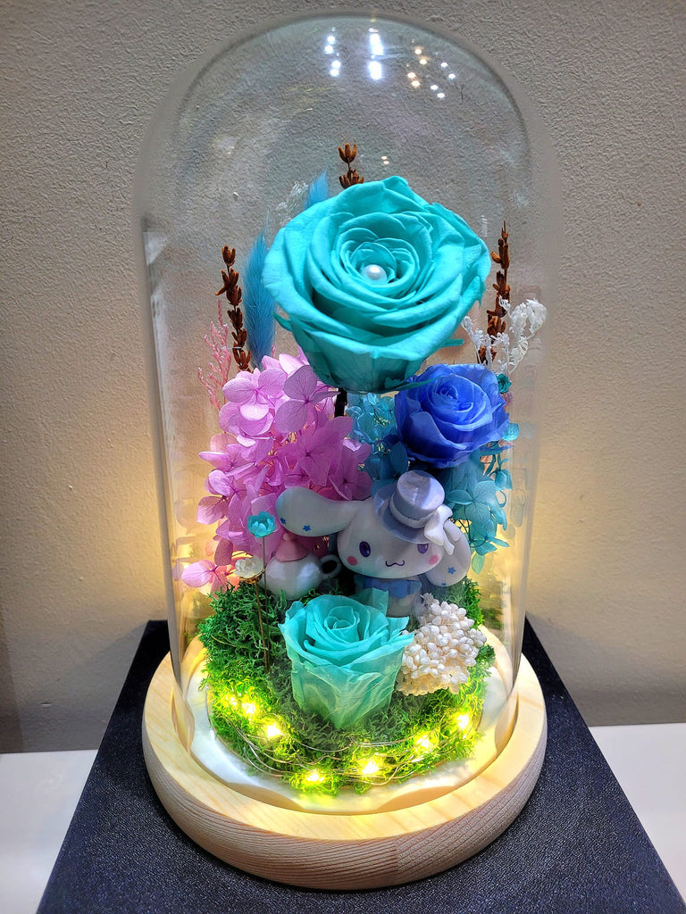 Enhance your celebrations with a hint of elegance or immerse yourself in the captivating allure of the Cinnamoroll Preserved Flowers Dome offered by Eternal Flowers Singapore. Ideal for commemorating any extraordinary event!
