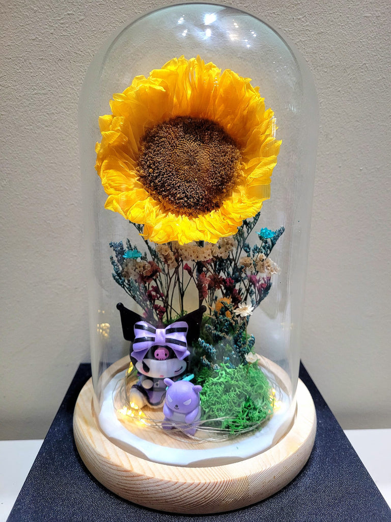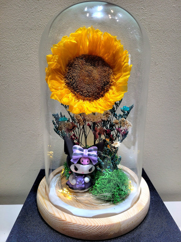 Embrace the cuteness of Kuromi with the delightful sight of the Preserved Sunflower Dome as a decorative figure. It's a perfect gift to celebration love such as birthday or anniversary.