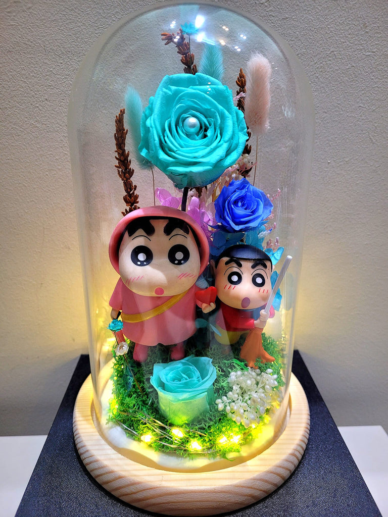 Get 2 Shin-Chan figurines in 1 single dome - One large, one small! Embrace the enchanting hues of Crayon Shin-Chan with Eternal Flowers Singapore's Preserved Flowers Dome – a captivating symphony of color and elegance, whether for commemorating cherished moments or simply reveling in its mesmerizing beauty.